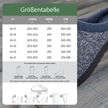 Warme Hausschuhe aus Baumwolle mit Memory Schaum & rutschfester Sohle.